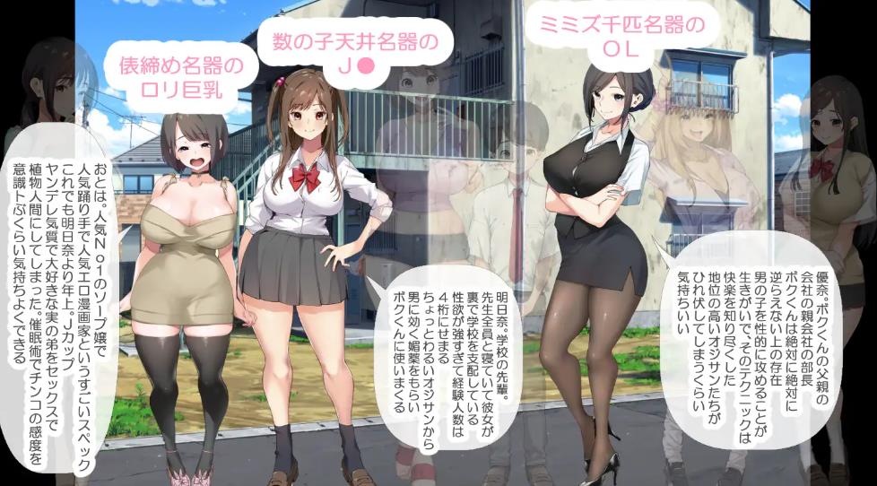 包括学生会会长明日奈、企业高管优奈、知名演员麻实以及人气漫画家音羽。