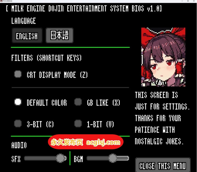 结合显像管风、GB 风、数字 8 色、1bit 化等多种滤镜,致力于融合「复古表现」与「最新动画技法」。