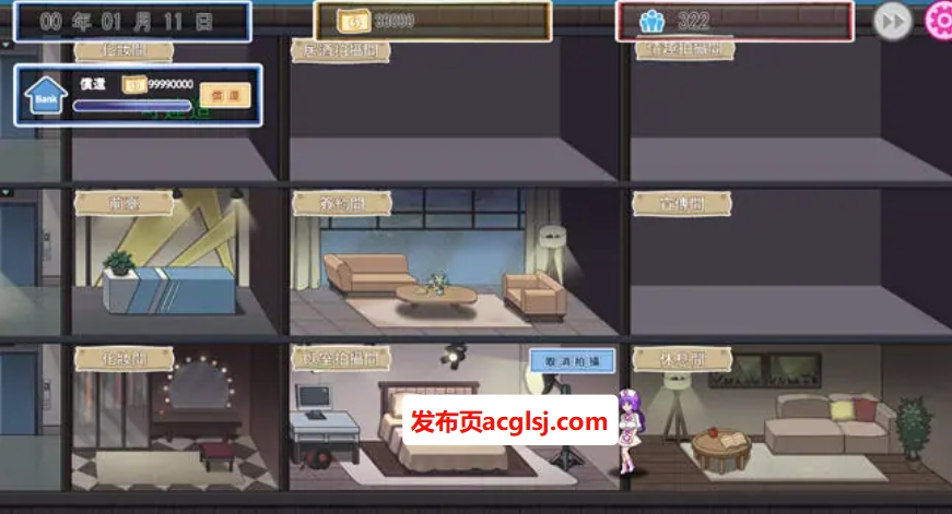 经典的箱式经营SLG玩法,从招聘艾薇女优到升级工作室设施到拍片等。