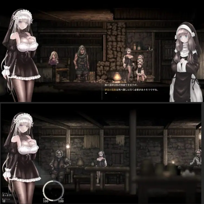 包含精心设计的像素动画、角色立绘以及反映角色状态的UI界面,