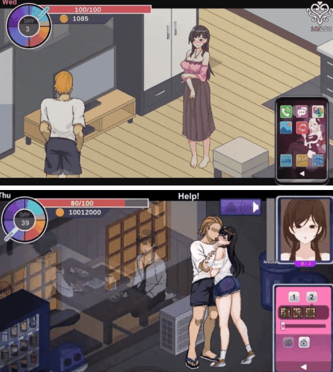 四时段策略:早/午/晚/午夜自由行动,打工赚钱、短信T情、魅魔技能升级,90天实时推进