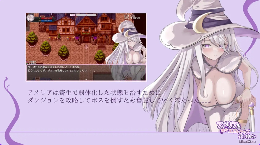 这是一款在探索迷宫的过程中,主角艾梅莉亚会遭遇各种猥亵情境的Roguelike RPG。