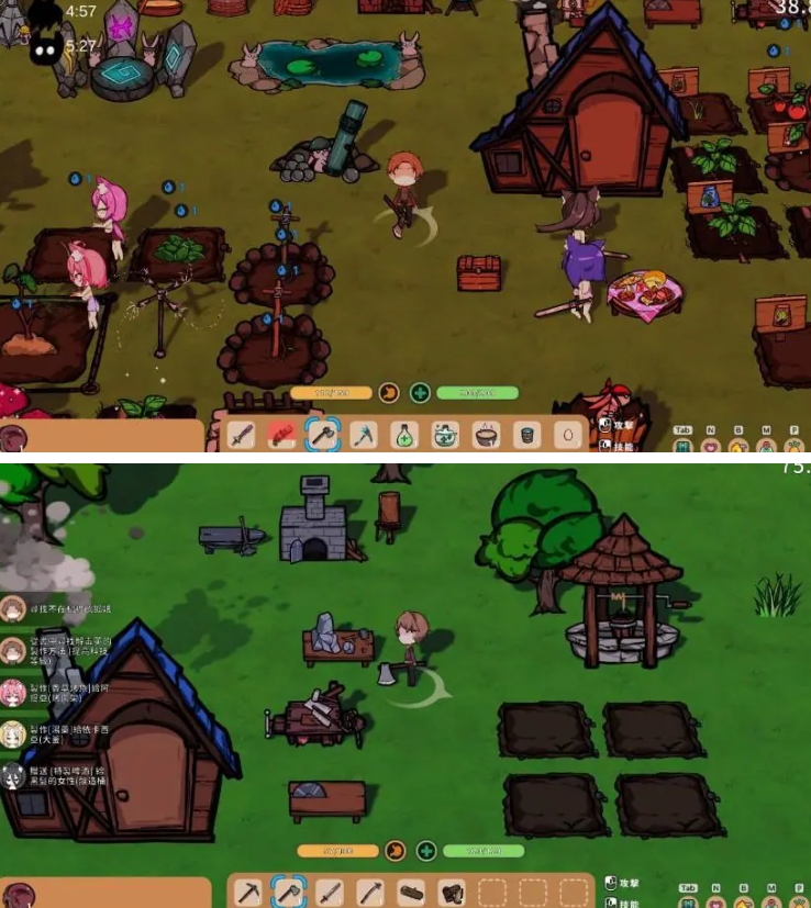 这是一款融合农场经营、自动化科技、角色羁绊与塔防战斗的生存模拟游戏: