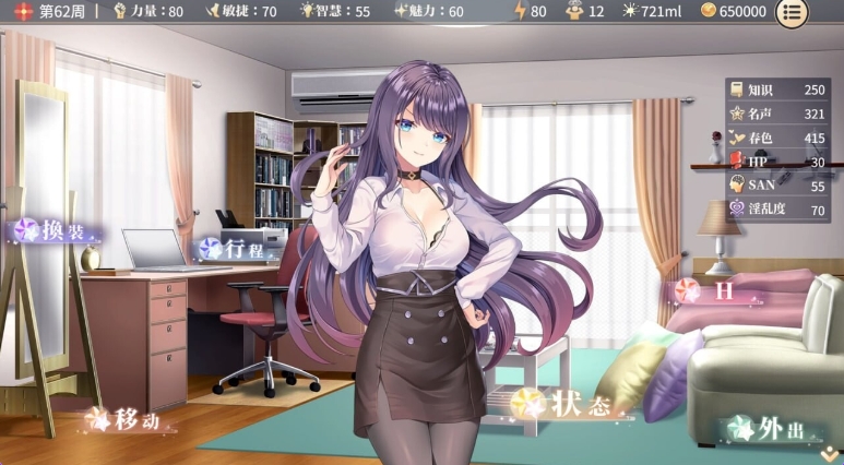 游戏进行两年,有六大行程可以安排,分别为:研究、便利商店、直播、女仆咖啡厅、酒店、卖春,